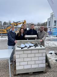 Bildquelle(n): (Titelbild/Bild 1) Im Bild, von rechts: wbg-Geschäftsführer Ralf Schekira, Oberbürgermeister Marcus König sowie Schul- und Sportreferentin Cornelia Trinkl legen mit Schülern des Hauses der Athleten den Grundstein für den Neubau. (Bild 2) Haus der Athleten Baugrube (Bild 3) Haus der Athleten Visualisierung / www.wbg.nuernberg.de