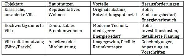 Vergleich: Klassische Villa, sanierte Villa und Umnutzung