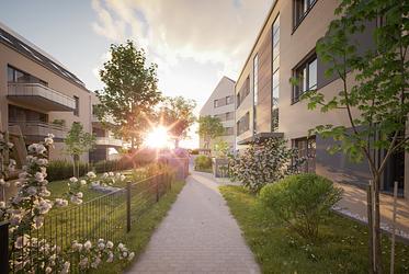 Das Neubauprojekt in der verkehrsberuhigten Volkacher Straße überzeugt mit seiner ruhigen Wohnatmosphäre bei gleichzeitig sehr guter Anbindung an die drei Großstädte Nürnberg, Fürth und Erlangen. Die 2- bis 4-Zimmer-Wohnungen mit Wohnflächen von 50 bis 105 m² zeichnen sich durch vielfältige Grundrisse und lichtdurchflutete Räume aus und verfügen über Terrasse, Balkon oder Dachterrasse. Auch zwei charmante Maisonette-Wohnungen zählen zum Angebot.